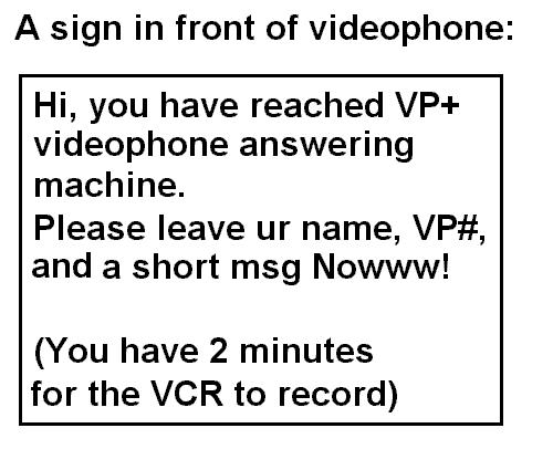 VP+ unit requires a VCR (or DVD) to operate as an "answering machine". DEAFWORKS strives for the best design to use the VP+ with your favorite VCR brands! But, there may be one little problem. If you use a VCR alot for recording your various TV shows, the VP+ will not work effectively. It would be best if you get another VCR, just for videophone answering machine only. Again, the nicest thing about VP+ is that it allows you to use freely with your own favorite VCR brands! What's more, if the VCR breaks down under warranty, you do not need to return it by mail of where you got it from. It would just a waste of money and time, too! You can just always run to your favorite store locally to buy a VCR replacement unit. The VCR costs around $50.00 nowadays, pretty cheap! Look out in the newspaper for future store holiday sales which it would gives you a deep discount for VCRs as low as $25.00!